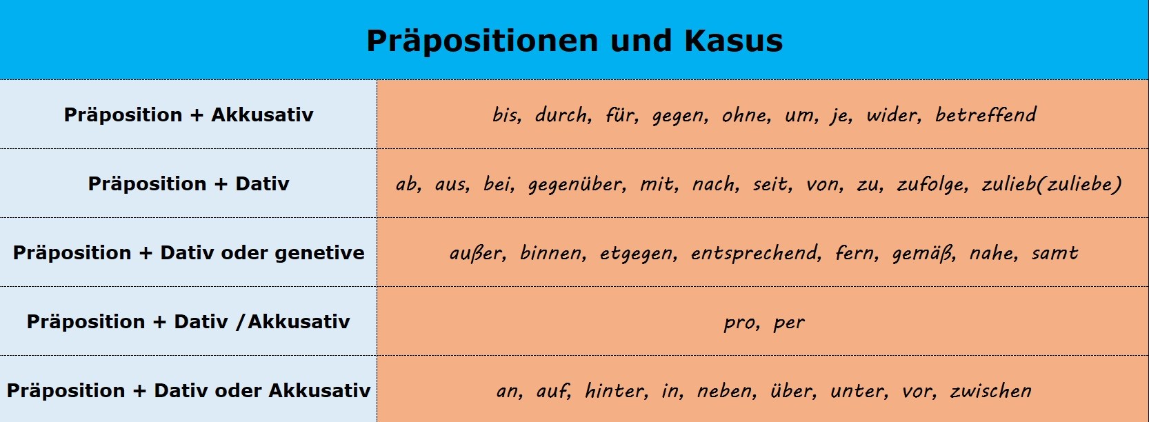 📝 برخی حروف اضافه در آلمانی هستند که بعد از آنها همواره آکوزاتیو، برخی همواره داتیو، برخی همواره گنتیو و برخی دو حالتی هستند هم می توانند آکوزاتیو بپذیرند و هم داتیو که یه بستگی به فعل جمله دارد.